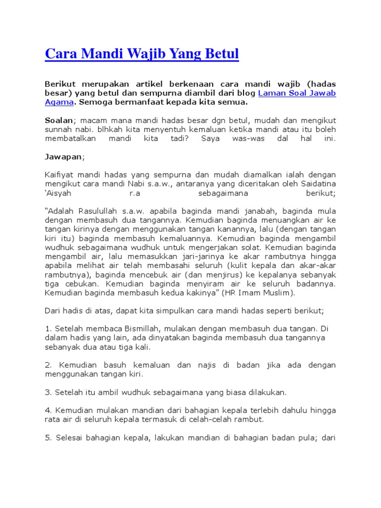 Tata Cara Mandi Wajib Atau Junub Yang Benar Simak Juga Ulasan Ustadz Adi Hidayat Portal Jember from assets.pikiran-rakyat.com Posted in cara cara mandi wajib, huum mandi wajib, mandi junub, mandi wajib cara betul, melancap, soal jawab agama on 00:29 by unknown | leave a comment edit newer post older post home 0 comments: Ketika ditanya tentang darah istihadah, nabi saw. Suami saya telah mengalami kemalangan dan patah kaki. Mandi wajib atau mandi besar atau mandi janabat diambil dari istilah bahasa arab al ghoslu atau al ghuslu al ghoslu lebih masyhur di kalangan ahli bahasa sedang al. Soal jawab agama imam masjid taman yayasan. Check spelling or type a new query. 2️⃣apakah hammam yang dimaksudkan sama dengan tempat pemandian umum seperti kolam renang? Tanya jawab tayammum & mandi lintas mazhab.